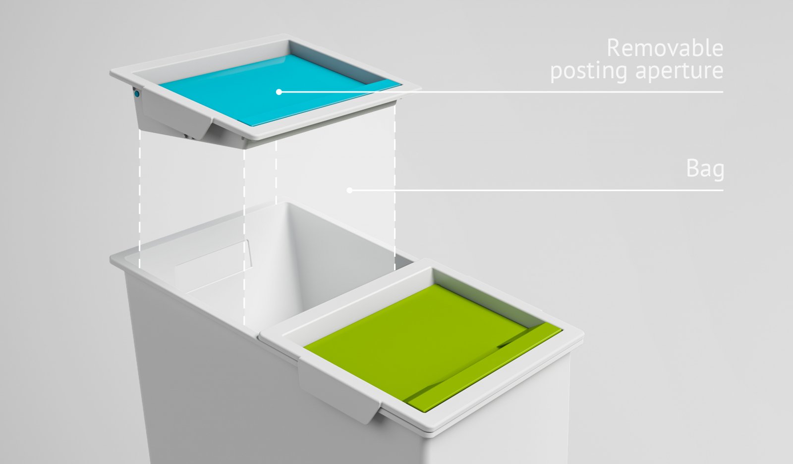 Pentru golirea facila a recipientelor capacele impreuna cu cadrele de fixare pot fi demontate separat.
